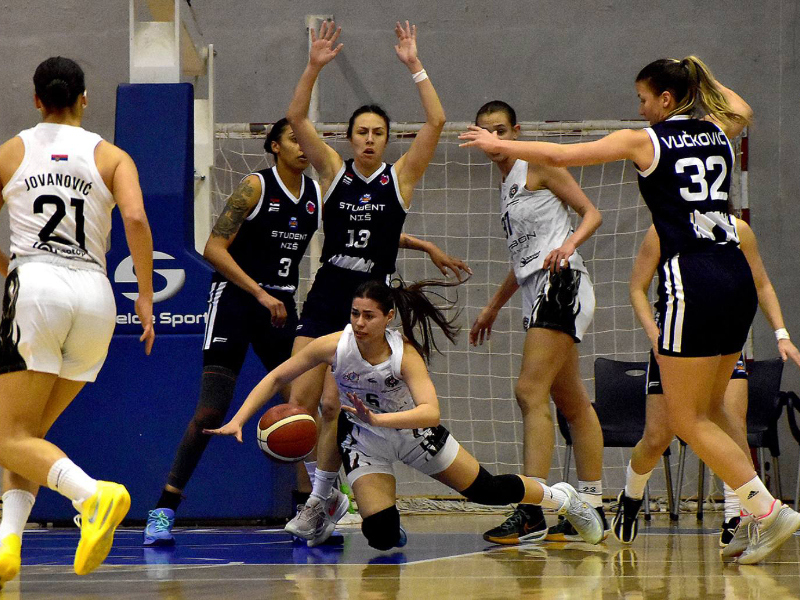 Student je u prvoj polovini deonice vodio,serijom od pet vezanih poena domaća ekipa preuzima vođstvo,ulazak sa klupe Ćulibrk i njenih 5 poena vraća minimalnu prednost Studentu na kraju ¼ 17:18. 2/4 je bila u rezultatskoj klackalici sve do tri minuta do kraja poluvremena gde je Partizan serijom 11:2 koju su predvodile Vasiljević i Perić stekao dvocifrenu prednost 44:32.U nastavku utakmice Student je preko Vučković uspeo da smanji zaostatak na 60:45.Poslednja deonica pripada Studentu ali to je bilo dovoljno samo za 11 poena zaostatka.
